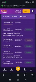 15 февраля мною были сделаны несколько депозитов , один из последних был 15февраля в 15:34 (скриншот я прикреплю). Удалось немного поднять . Ставлю на вывод 8000р,сутки ожидания и затем отмена и так продолжается уже на протяжении 5 дней . Поддержка отвечает шаблонно и ничего толкового не говорит,просит изменить сумму и попробовать снова . Выводы делались на разные реквизиты банков (с которых я пополнял) , выводы делались на электронный кошелек с которых я так же пополнял и разными суммами . Вообщем 5 дней одно и тоже , помогите разобраться в ситуации .