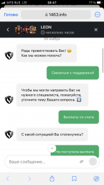 Служба поддержки Леон 1463.info была создана заявка на вывод.больше недели и так она не обработалась.чат с оператором закрыт был оператором