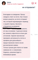 08.12.2025, 21:12 оформила заявку ID: 56628423 на вывод 10000 рублей. Через несколько дней статус заявки изменился на "Успешно проведена". Но на карту деньги не поступили. Обращаюсь в поддержку, говорят: - "Сроки зачисления до 24-х часов после того, как статус изменился на Успешно". Хотя ранее делала заявку на вывод 15000 ID: 55831443, деньги поступили моментально, как только статус поменялся на "Успешно", на эту же карту. В поддержке несколько раз просила отправить документ (чек/квитанцию) о переводе на карту для обращения в банк на розыск платежа. Ответ один: - "Все в порядке. Ждите. Деньги придут". В итоге 24 часа прошло, деньги не пришли. Обращаюсь еще раз. Оператор говорит, что направил заявку в фин. отдел на предоставление документов о платеже. Спрашиваю в какие сроки ждать на почте? Ответ: - "Сроков нет". Это как? Просьба представителю казино: 1) Проверить что заявку создали. 2) Обозначить регламентированные сроки поступления документа на почту. 3) По возможности ускорить этот процесс. Спасибо.
