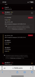 Здравствуйте. 29.11.2024 пополняла баланс и подняла 190000 р. При попытке вывести начали просить верификацию. Сначала верификацию прошла. Ее приняла. Но потом вдруг решили отменить. Начала проходить заново, стали запрашивать различные документы по типу «подтверждение что это твой номер» и т.д. Бегала по салонам связи, а верификацию отклоняют, то печати нет (прошу заметить что печати отменены ФЗ) то не такая бумажка. В общем собрала все бумаги, отправила, отвечают на почту «все документы высланы верно, остался чек пополнения». Я на радостях, скидываю все по новой, с чеком и всеми ранее высланными документами. На след день захожу посмотреть, иииииии МОЙ АККАУНТ ЗАБЛОКИРОВАЛИ!!!!! То есть, 2 месяца меня мурыжили в конечном итоге написали что остался один чек, и тут вдруг заблокировали. Решила разбираться, причиной оказалось что почта не под моим именем. Серьезно? Как название моей почты может нарушить правила сайта? Почту я могу назвать как мне хочется, хоть «Василий Пупкин», казино это касаться не должно. Почта зарегистрирована на МОЙ номер, который я подтвердила вам бумажкой с печатью. Окей, мой аккаунт разблокировали. Кнопки верификации нет! Ставлю деньги на вывод. Пишут 5 суток ждите. Жду! Проходит 5 суток, пишу в поддержку! ВНИМАНИЕ!!!!! Мой аккаунт не верифицирован, и оказывается вывод приостановлен! Хотя вывод висит в работе!